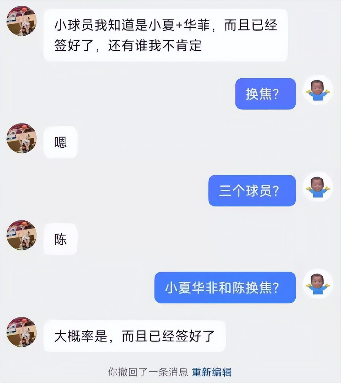 结合目前的消息来看,很可能是夏振峰和章华非,有球迷在广东队评论区晒出聊天截图,知情人士透露广东队将送走夏振峰和章华非,以及从北控买来的陈国豪,以此换来焦泊乔。